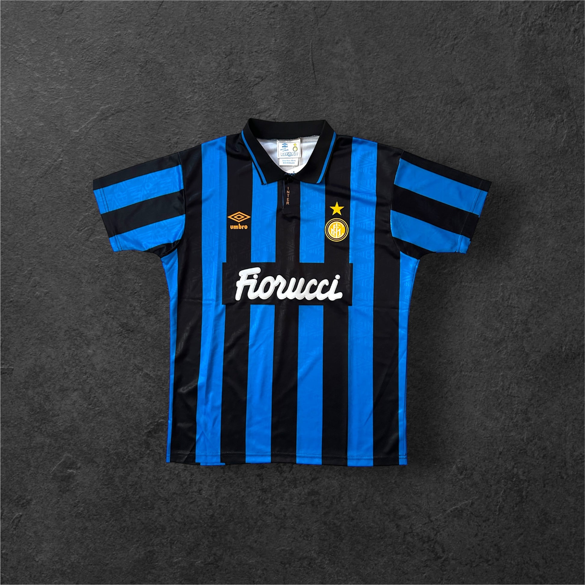 Este bellísimo diseño de Umbro acompañó al Inter entre 1991 y 1994. Un periodo en el que Fitgar y Fiorucci Foods actuaron como patrocinadores.